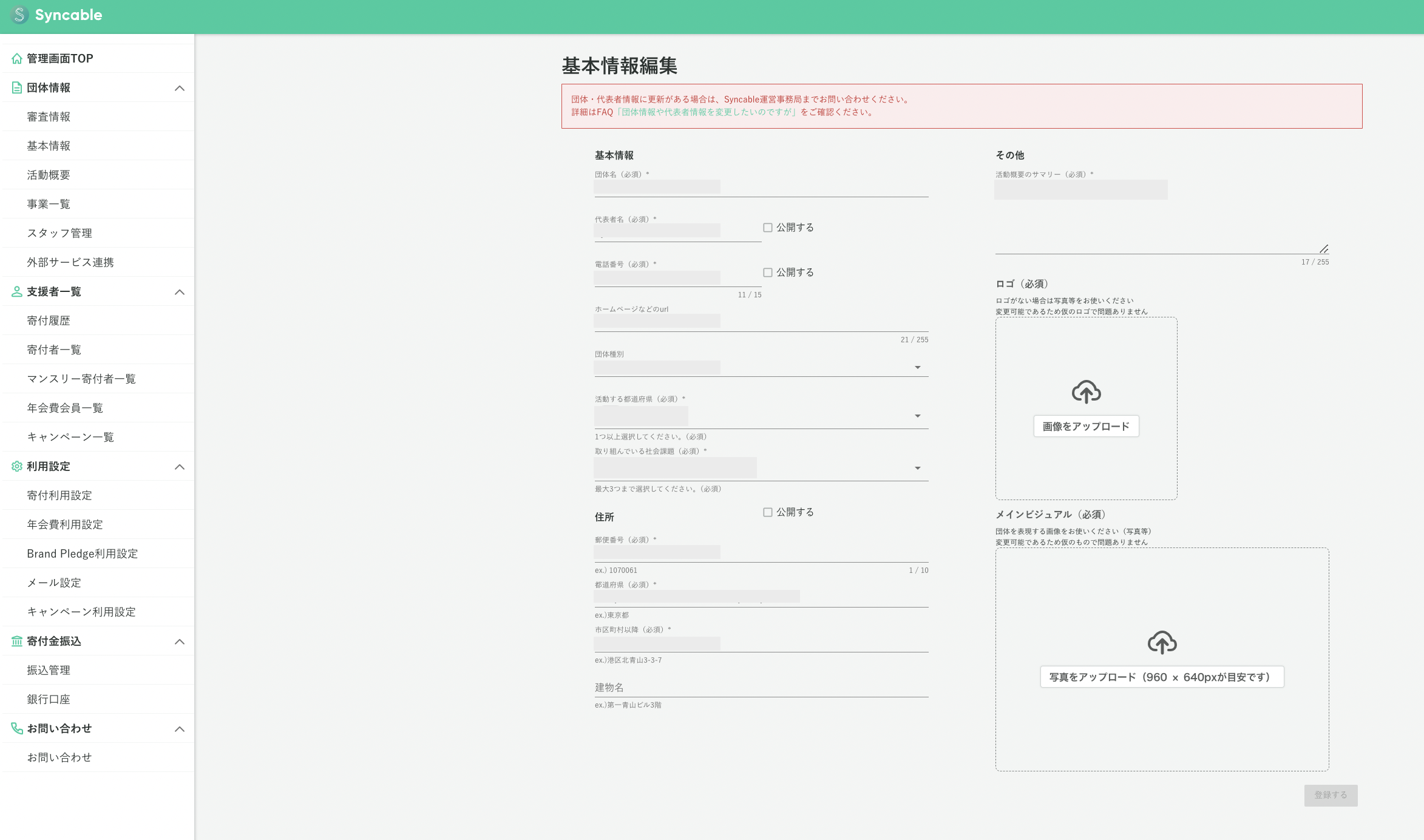 - 基本情報(団体管理画面「基本情報」とは?)