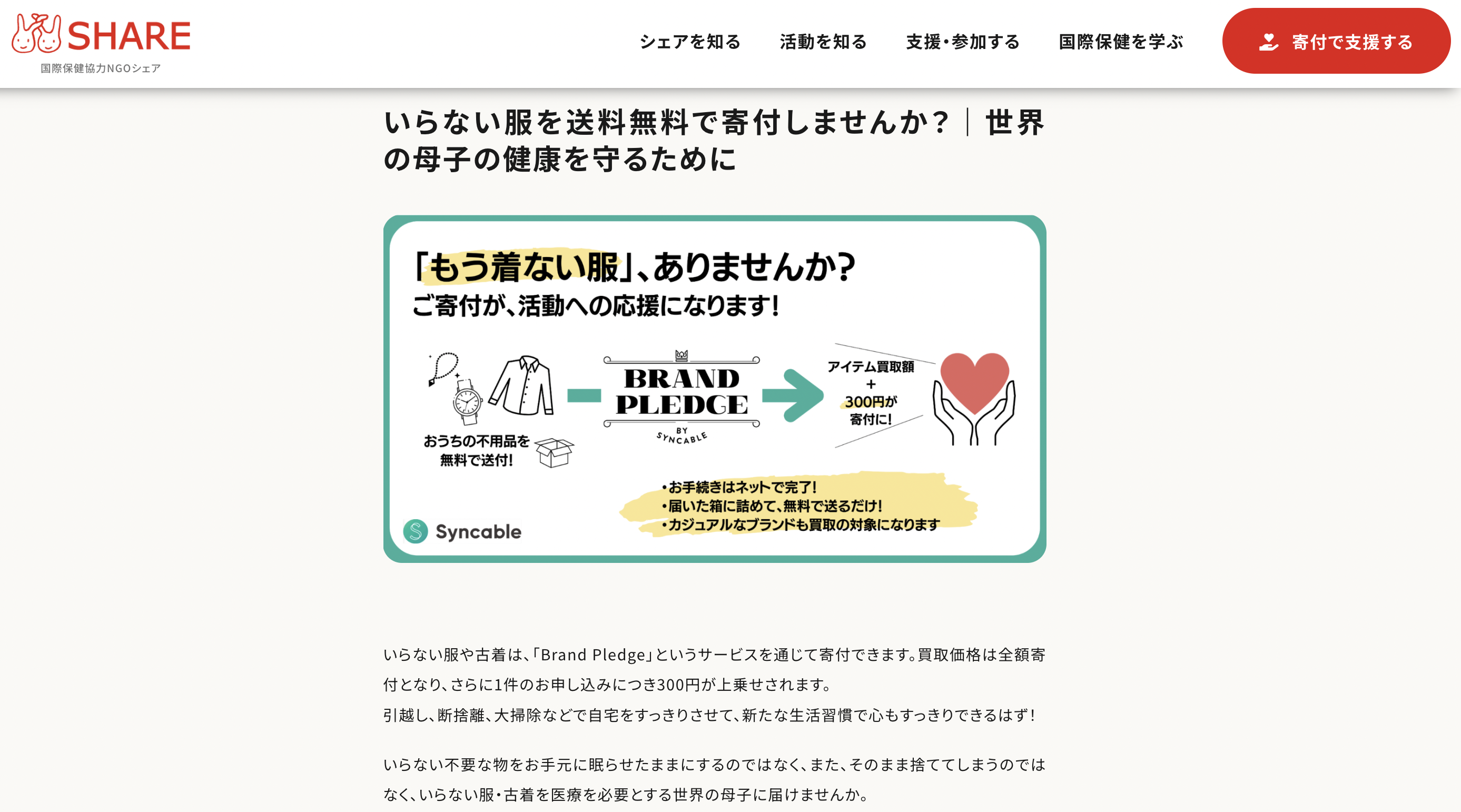 特定非営利活動法人シェア=国際保健協力市民の会:いらない服を送料無料で寄付しませんか?|世界の母子の健康を守るために