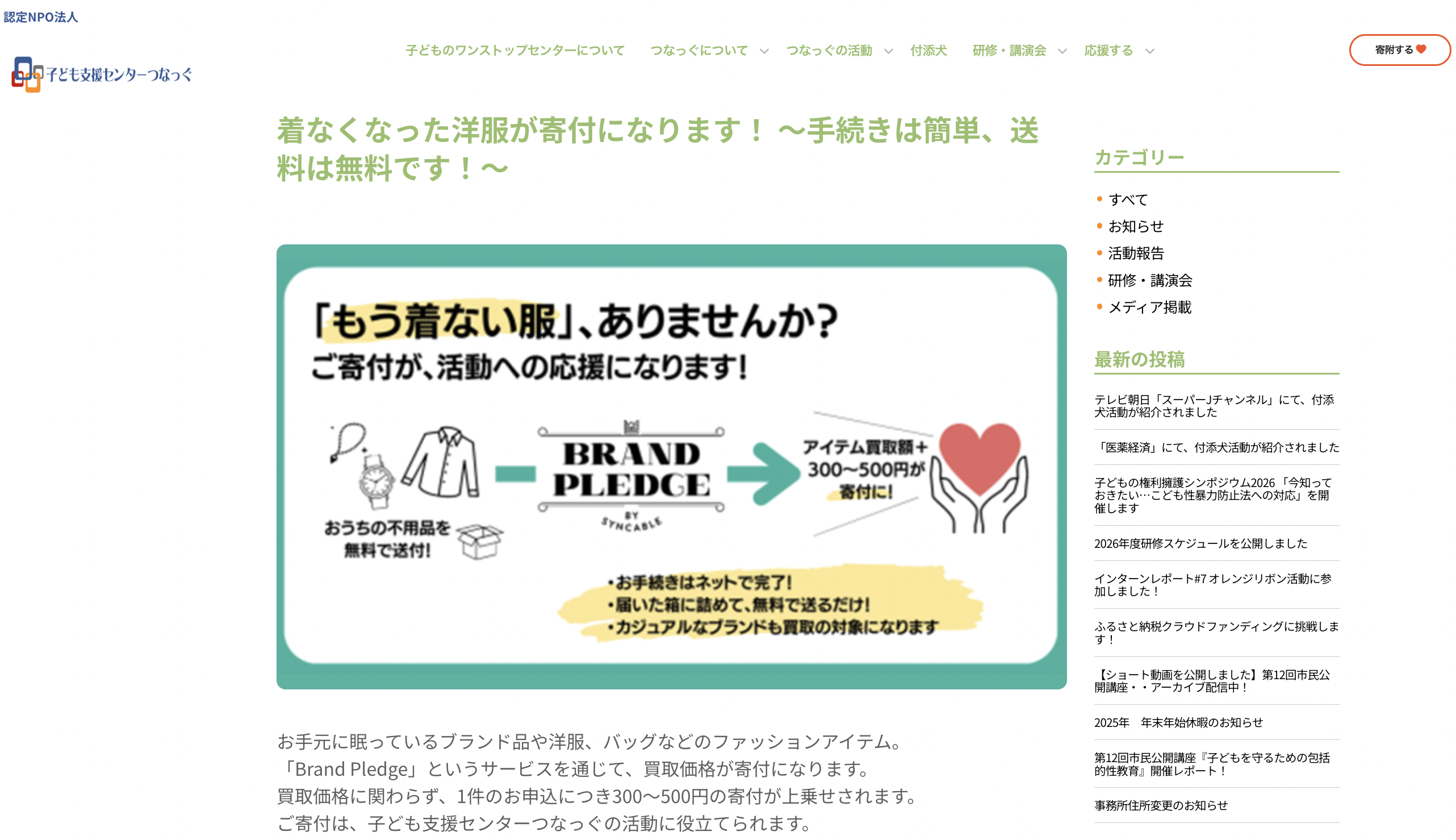 認定NPO法人子ども支援センターつなっぐ:着なくなった洋服が寄付になります! 〜手続きは簡単、送料は無料です!〜